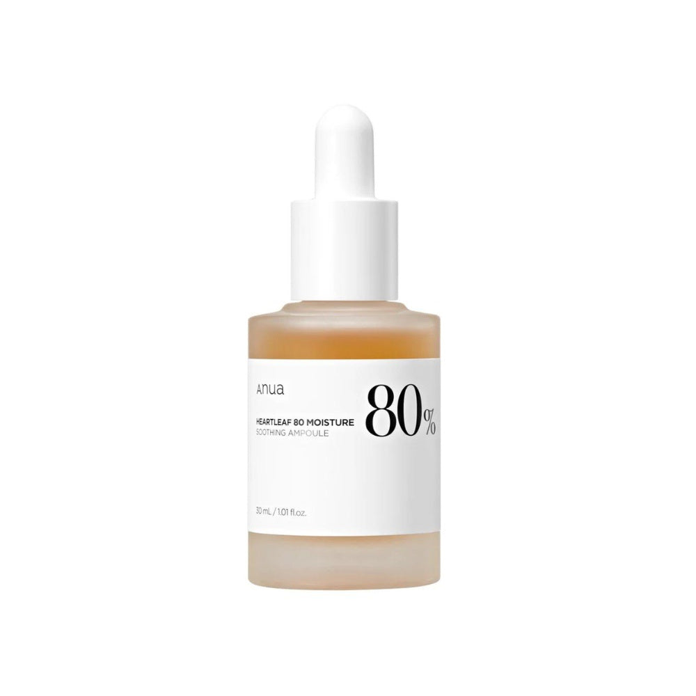 Soothe and strengthen sensitive skin with ANUA Heartleaf 80% Soothing Ampoule 30ml, a calming serum packed with 80% heartleaf extract to reduce redness, calm irritation, and support a healthy skin barrier. Ideal for acne-prone, reactive, or stressed skin, this lightweight ampoule absorbs quickly, delivering deep hydration without stickiness or clogging pores.