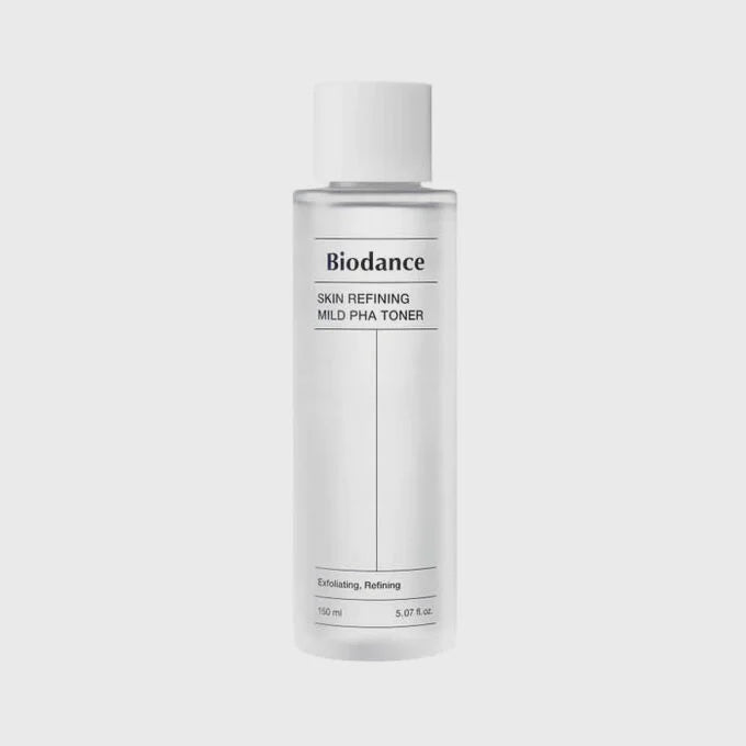 The Biodance Skin Refining Mild PHA Toner (150ml) is a gentle exfoliating toner formulated with polyhydroxy acids (PHA) to softly remove dead skin cells, refine skin texture, and promote a smoother, brighter complexion. Suitable for sensitive skin, this mild formula hydrates and soothes while helping to reduce roughness and uneven tone without irritation. Ideal for daily use, it prepares the skin for better absorption of moisturizers and serums, leaving your skin refreshed and radiant.