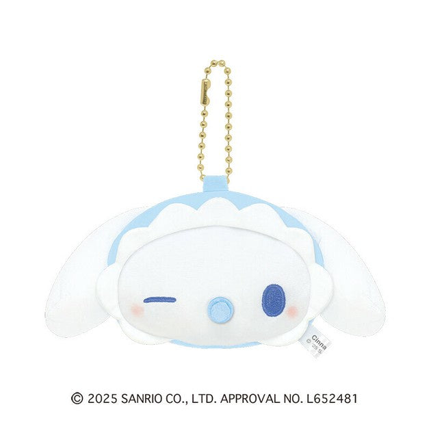 SANRIO Cinnamoroll Plushie Stuffed Mirror Keychain — a cute and functional keychain featuring a soft Cinnamoroll plush with a built-in mirror. Perfect for on-the-go touch-ups while adding a playful and kawaii Sanrio charm to your keys or bag.