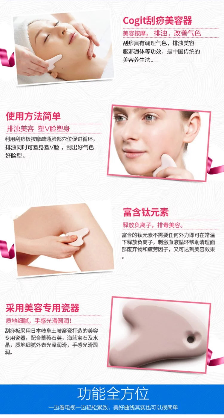 COGIT Cassa Body Plate, created from rose stone with a smooth gliding surface. Designed to fit comfortably on your skin, it moves smoothly with a refreshing feel. The 3 curves of this plate massage your face along the jaw and chin, tightening the skin. Also good to tone the legs.