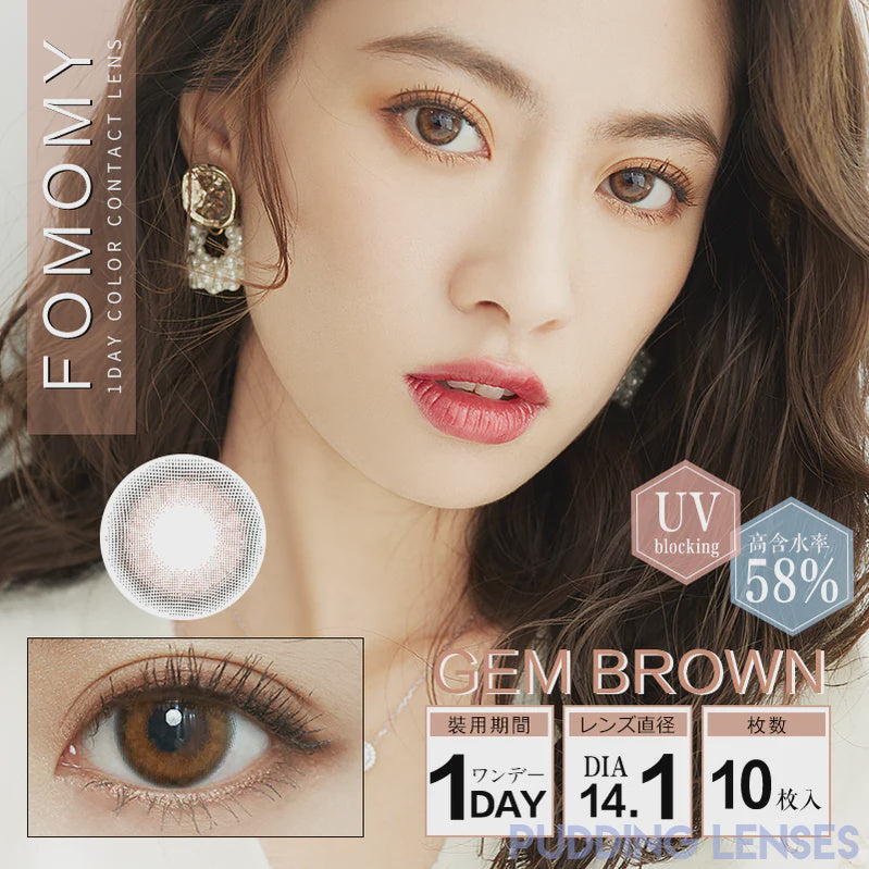 PUDDING FOMOMY Gem Brown 1-Day Contact Lenses (10pcs) give your eyes a warm, radiant sparkle with their natural brown gemstone-inspired design. Perfect for daily disposable wear, these Korean color contacts provide all-day comfort, hydration, and a lightweight fit while enhancing your gaze with a soft, luminous glow. Ideal for both everyday looks and special occasions, they blend seamlessly with your natural eye color for a charming and elegant finish. Upgrade your style effortlessly with these daily brown cosmetic contact lenses.