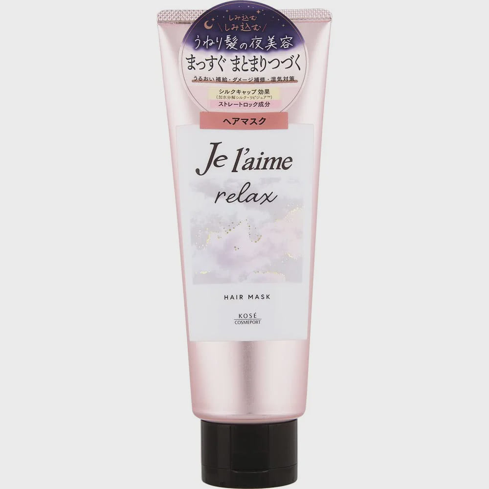 The Je l’aime Relax Midnight Repair Hair Mask 230 g is a night‑focused Japanese deep treatment that transforms even stiff, frizzy, or hard-to-manage hair into soft, smooth, and straight locks by morning. Infused with botanical oils and plant extracts like argan oil, rosehip extract, lavender, and manuka honey, this creamy mask penetrates deeply to repair damaged fibers, lock in moisture, and improve elasticity without weighing hair down. It also offers color protection and heat-based styling resistance while delivering a relaxing floral-fruity aroma. To use, apply after shampooing to towel-dried hair, leave on for 2–5 minutes, and rinse thoroughly for visibly renewed, silky hair.