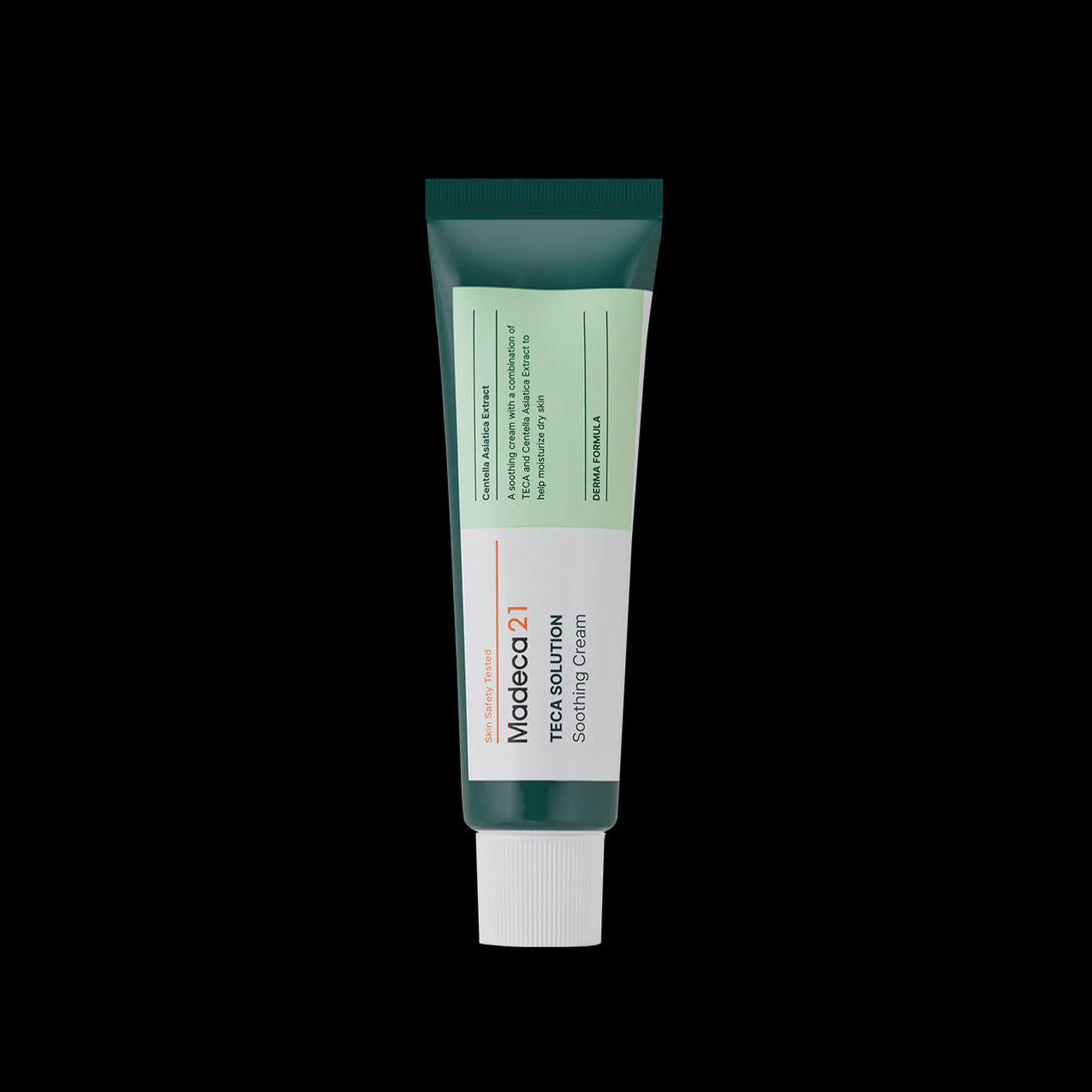 The Madeca21 TECA Solution Soothing Cream 50ml is a gentle, barrier-repair cream formulated with TECA (Centella Asiatica extract) to calm irritation, strengthen skin resilience, and deeply moisturize. Its lightweight yet nourishing texture absorbs easily, soothing redness and dryness while supporting skin recovery for a smooth, healthy-looking glow. Perfect for sensitive or stressed skin.