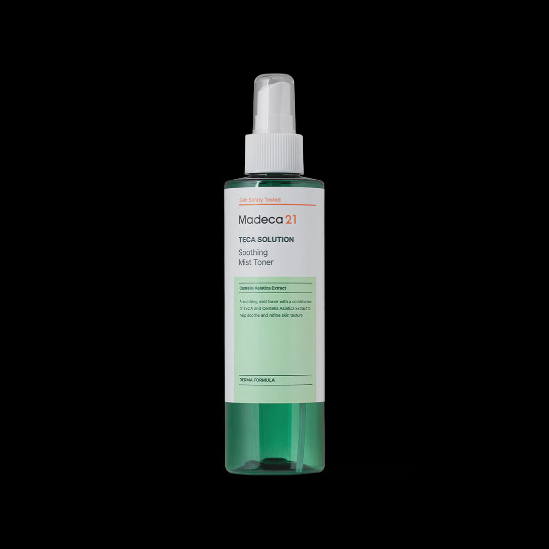 The Madeca21 TECA Solution Soothing Mist Toner 200ml is a refreshing spray toner powered by TECA (Centella Asiatica extract) to instantly soothe, hydrate, and strengthen sensitive skin. With its fine mist formula, it calms irritation, restores moisture balance, and preps the skin for better absorption of skincare products — perfect for an on-the-go skin refresh anytime, anywhere.