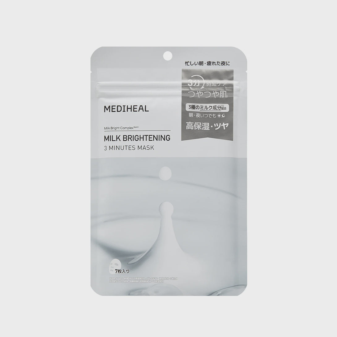 MEDIHEAL Milk Brightening 3 Minute Sheet Mask (7pcs) is a fast-acting brightening sheet mask infused with milk-derived nutrients and vitamins to even skin tone, hydrate, and add radiance. In just 3 minutes, it delivers concentrated essence that softens, nourishes, and refreshes the skin, leaving the complexion glowing, smooth, and revitalized. Perfect for a quick daily brightening boost.