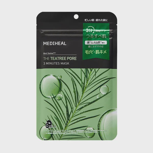 MEDIHEAL The Tea Tree Pore 3 Minute Mask (7pcs) is a fast-acting sheet mask designed to refine pores, control excess oil, and soothe irritated skin. Infused with tea tree extract and calming botanical ingredients, it delivers concentrated care in just 3 minutes, leaving skin clean, refreshed, and balanced. Perfect for a quick pore-care boost anytime.