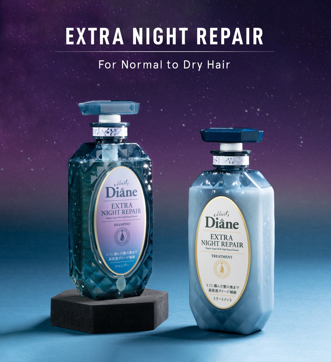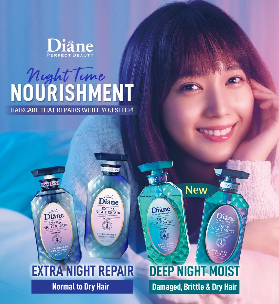 Moist Diane Perfect Beauty Extra Night Repair intensively repairs hair overnight for irresistably soft and beautiful hair. Formulated with ECOCERT Organic Moroccan Argan oil and Night Repair Keratin, suitable for damaged, coloured or permed hair. Infused with a relaxing floral scent that lingers after washing to soothe the mind from daily stressors. Treatment comes in a new texture, with Vitamin E capsules that burst to deeply penetrate hair cuticles and nourish for visibly softer and smoother hair.