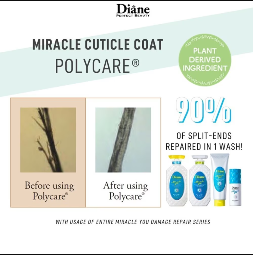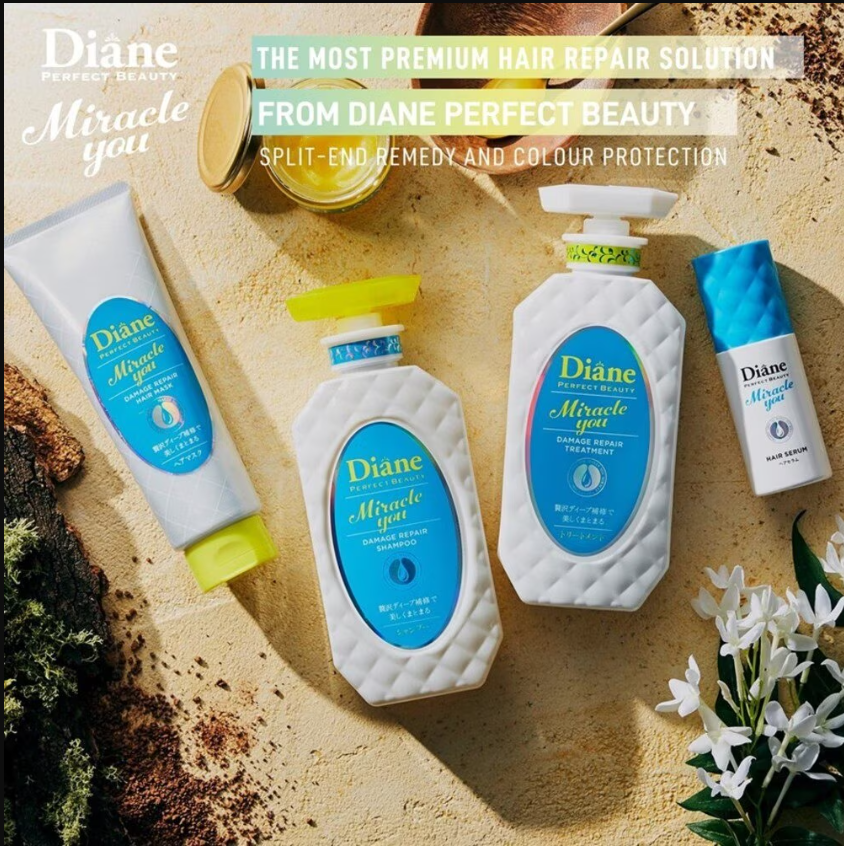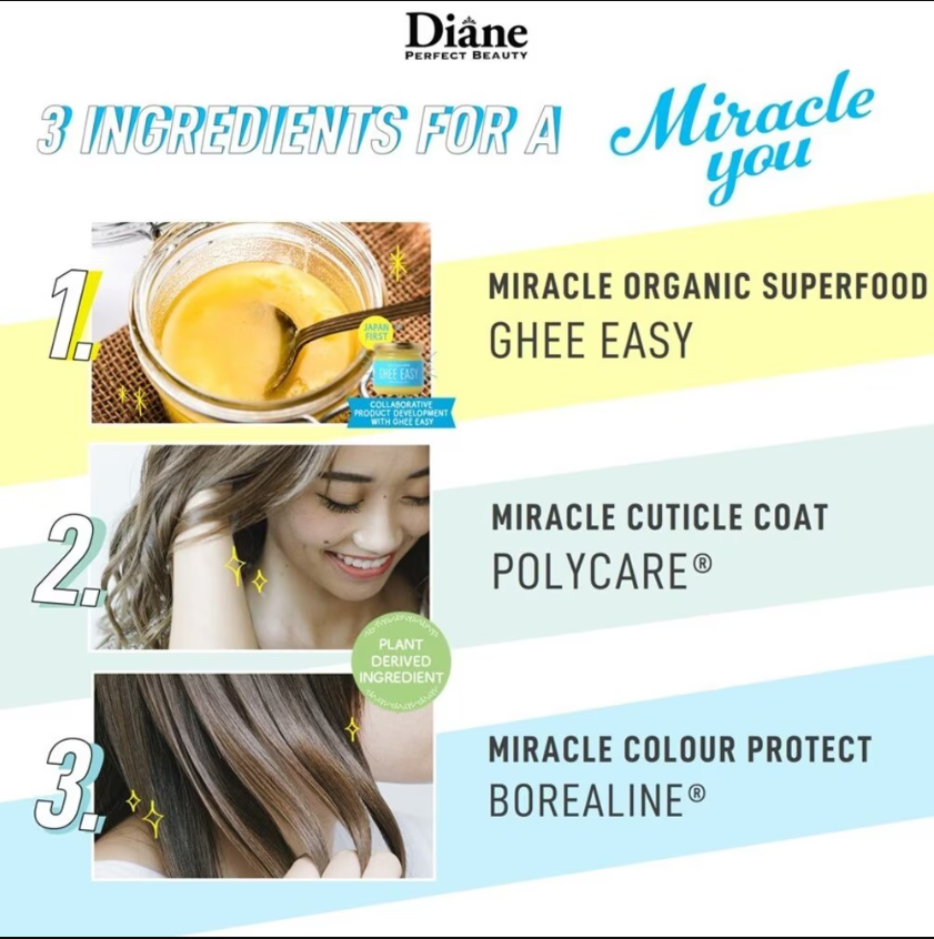 The premium hair repair solution for severely damaged/ chemically treated hair from Diane! Miracle You Damage Repair reduces up to 90% of split-ends and hair breakage with just 1 wash and provides continuous 8hr protection from colour-fading caused by UV exposure. Change your hair miraculously with 3 miracle ingredients: