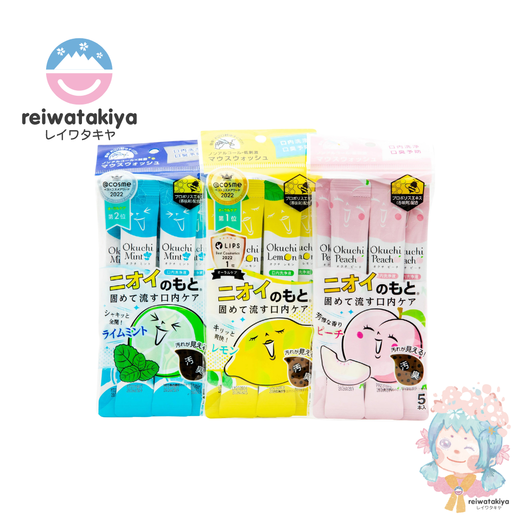 Packet of 5 individually packaged mouthwashes that work to remove all dirt and debris from inside your mouth and remove the solidified protein that causes bad breath. Recommended for removing odour after enjoying a meal and as part of your daily dental care. Comes in a non-alcoholic, low irritation type.