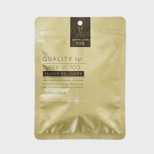 Quality First Derma Laser Super VC 100 Mask 7pcs is a brightening Japanese sheet mask infused with four types of vitamin C, niacinamide, and ceramides to improve skin clarity and radiance. Using advanced nano-capsule technology, it delivers active ingredients deep into the skin to reduce dullness, refine pores, and enhance elasticity. Free from mineral oil, alcohol, fragrance, colorants, and preservatives, this gentle mask is ideal for sensitive skin, leaving your complexion smooth, luminous, and refreshed.