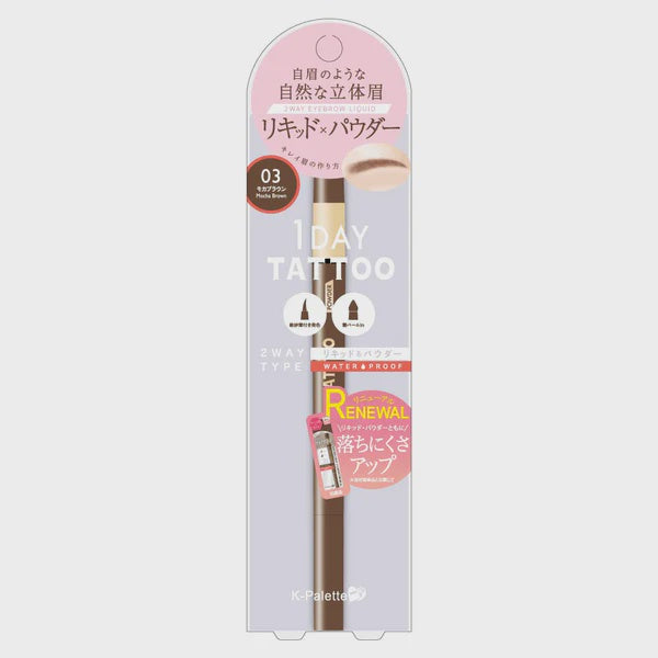Quore K-Palette Lasting Two-Way Eyebrow Liquid 03 is a dual-ended eyebrow pen that combines a fine liquid tip for detailed definition and a powder tip for natural shading. Its waterproof, smudge-proof formula ensures long-lasting color that stays flawless all day. Perfect for creating soft, natural, and perfectly sculpted brows with ease.