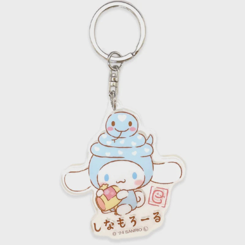 Celebrate the Lunar New Year with the adorable Sanrio Cinnamoroll Snake Year Edition Acrylic Keychain, featuring Cinnamoroll dressed in a cute snake-themed outfit to mark the Year of the Snake. Crafted from high-quality acrylic, this charm combines vibrant detailing with durability and a lightweight feel, making it a playful and practical accessory. The sturdy metal clasp ensures secure attachment to your keys, bag, or backpack, while the whimsical design brings both festive fun and Sanrio charm to your everyday carry. A perfect gift for Sanrio enthusiasts and zodiac lovers alike, this Cinnamoroll snake costume keychain is a delightful keepsake that blends tradition with kawaii style.