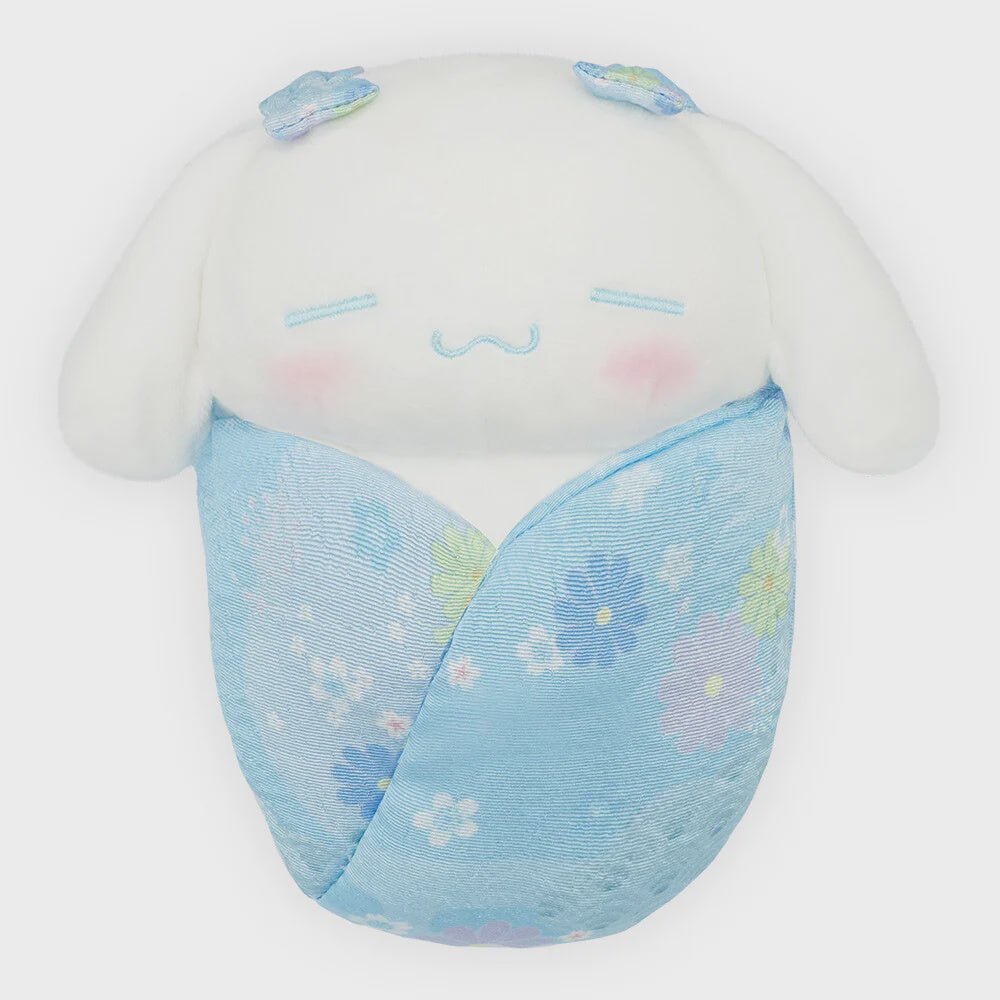 The Sanrio Characters Swaddle Mascot – Japanese Pattern L Cinnamoroll is a larger, adorable collectible featuring Cinnamoroll wrapped in a soft swaddle with traditional Japanese patterns. Perfect for display or decorating desks, bags, or shelves, this plush combines kawaii charm with cultural flair. Its bigger size makes it a standout piece, ideal as a gift or a playful addition to any Sanrio collection.