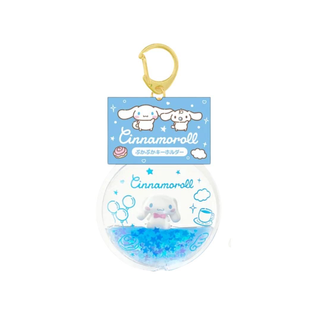 A cute Cinnamoroll floating key holder with sequins that move, bringing a dynamic element to your keychain.