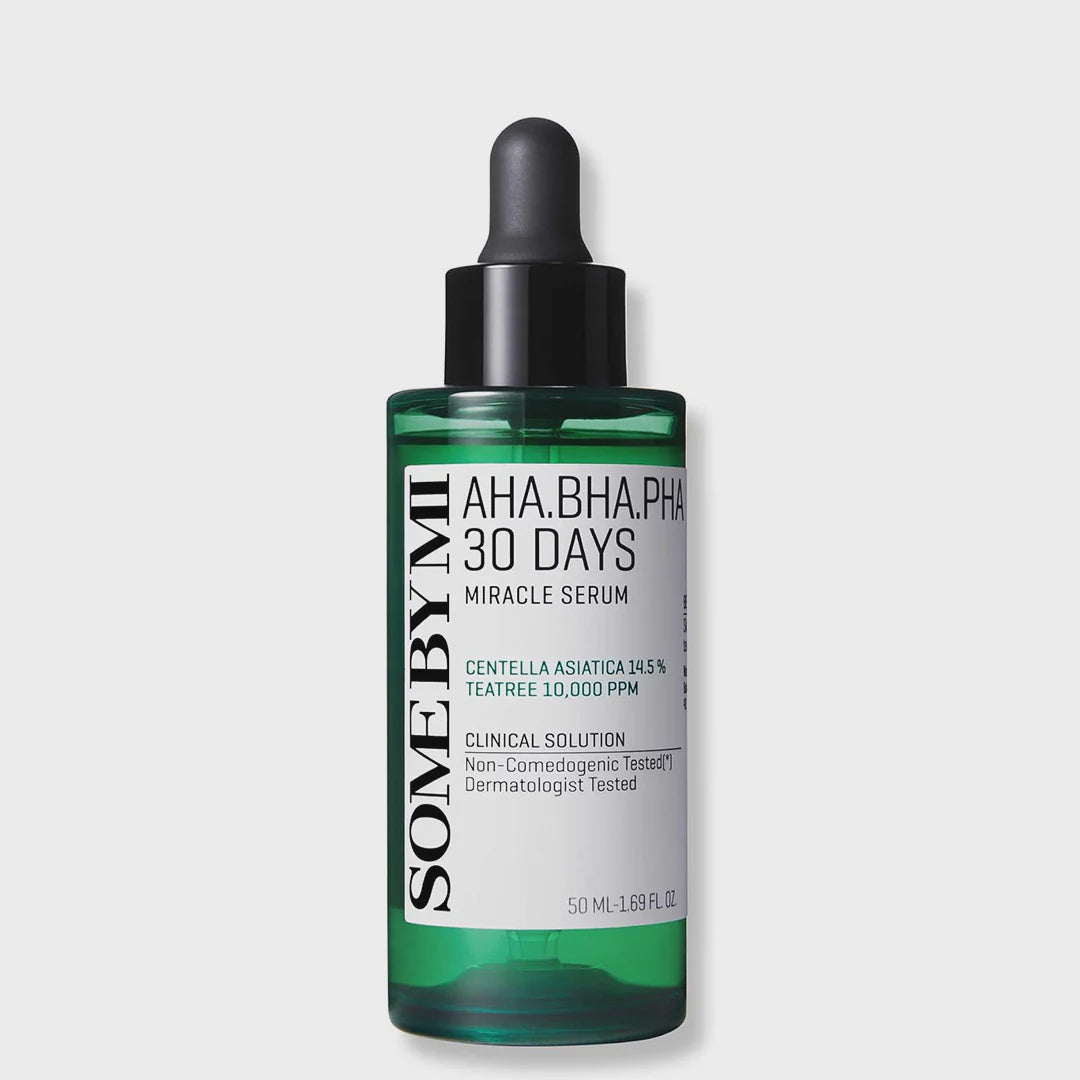 The SOME BY MI 30 Days Miracle Serum (50ml) is a powerful soothing and clarifying serum formulated with Tea Tree, Centella Asiatica, and AHA-BHA-PHA to gently exfoliate and balance the skin. It helps reduce acne, control excess oil, and minimize pores while keeping your skin hydrated and calm. Lightweight and fast-absorbing, this serum restores skin clarity and radiance in just 30 days. Perfect for acne-prone and sensitive skin, the SOME BY MI Miracle Serum promotes a smoother, healthier, and more luminous complexion.