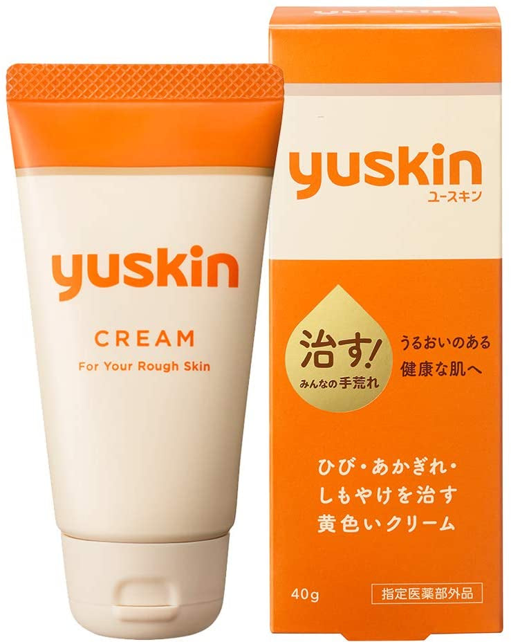 YUSKIN CREAM FOR ROUGH SKIN CREAM that cures cracks, chapped skin, and chilblains.Four active ingredients cure "cracks, chapped skin, and chilblains" (designated quasi-drug).Two moisturizing ingredients -("vitamin B2," a water-soluble vitamin.)moisturize the skin.Skin is immediately moisturized after application, and the excellent moisturizing effect lasts.Can be used on the whole body if it suits your skin.Convenient "on-the-go tube" for easy carrying.